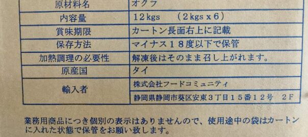 当社が取り扱う「タイ産 冷凍オクラ・スライス」では、製品包装の内袋について、約3年前より透明袋から青色袋へと仕様変更を行っております。 この変更には、主に以下の2点を目的としています。 第一に、製造現場における他原料との … 続きを読む 冷凍オクラ・スライス の内袋、仕様変更について