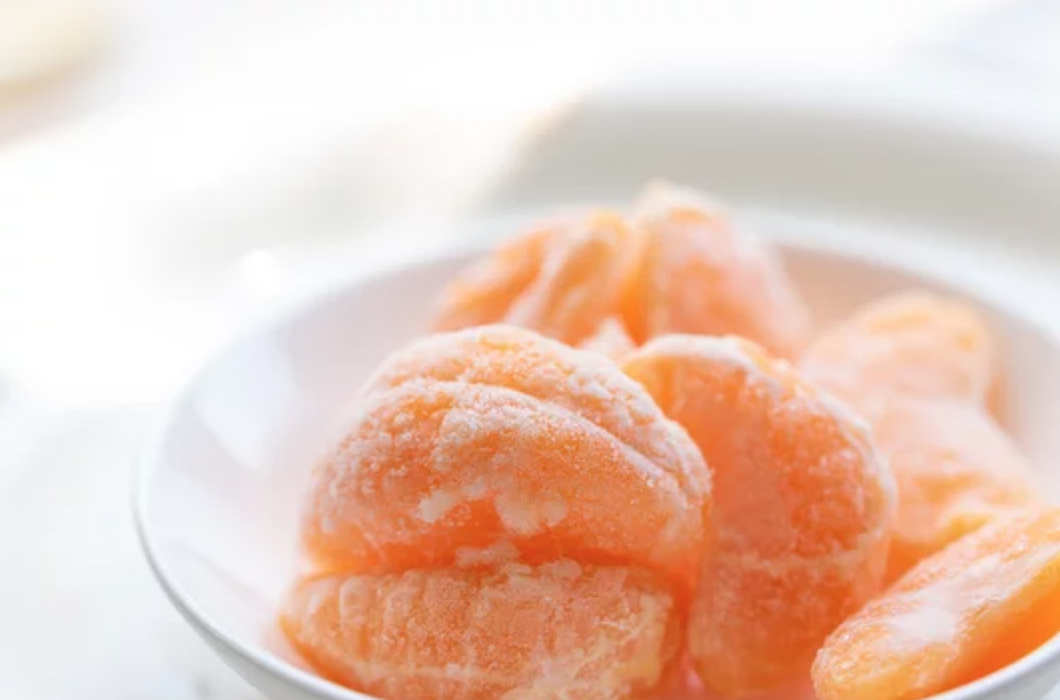 原料のわさびの茎をスライス後、塩を添加して凍結